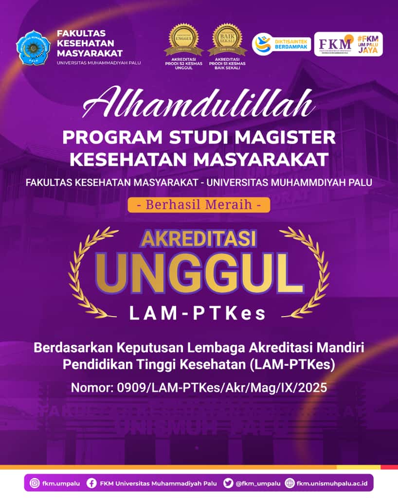 Pada tanggal 24 Desember 2002, Unit Pengelola Program Studi (UPPS) dan Program Studi (PS) Fakultas Kesehatan Masyarakat Universitas Muhammadiyah Palu resmi didirikan berdasarkan rekomendasi Departemen Kesehatan (Depkes) Republik Indonesia tanggal 17 September 2002 dengan nomor Hk.03.2.4/2067, serta mendapat izin dari Direktorat Jenderal Pendidikan Tinggi (DIKTI) dengan nomor 3703/D/T/2002 pada tanggal yang sama.